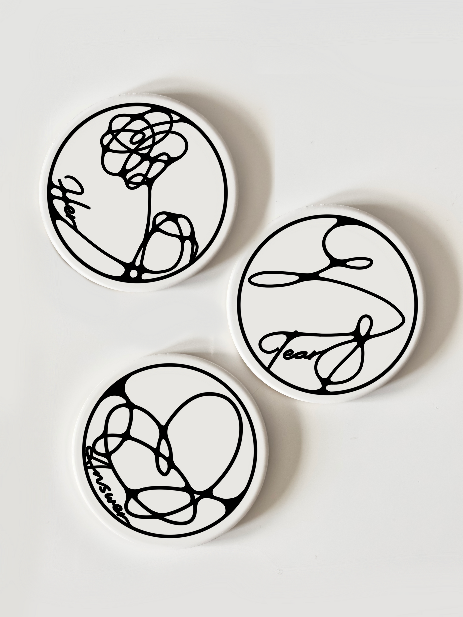 Our hand-pressed coasters are made in-house~ we try our best to make them perfect but since they are handmade please be aware there could be slight imperfections!